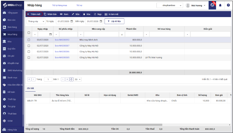 Belonging to the top of good and professional POS retail store chain management software, Misa eShop provides businesses with useful features, especially, stable use without an Internet connection. Businesses can manage products by batch number, barcode, expiration date... flexibly, and at the same time, control all inventory in the simplest and most effective way.