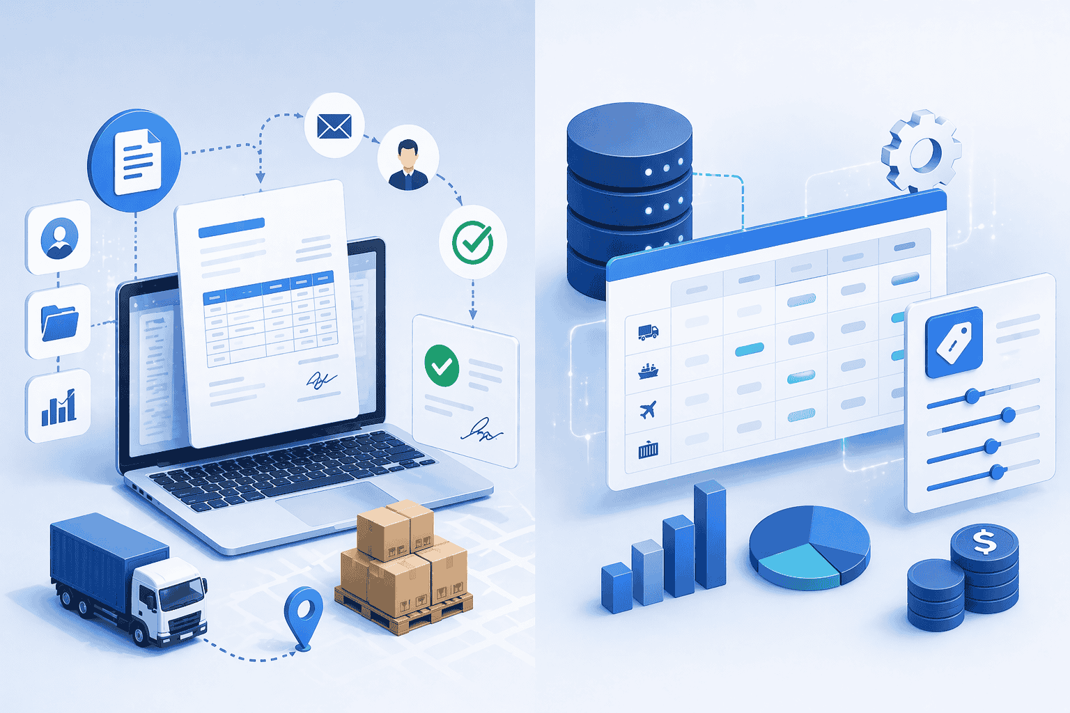 • Tự động hóa báo giá: Thiết lập các bảng giá mẫu (Template) và quy tắc tính toán chi phí tự động dựa trên trọng lượng, kích thước và phương thức vận chuyển.