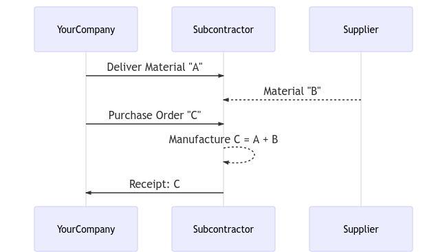 Here is an example of subcontracting the manufacturing of “C”, which is produced out of raw materials “A” and “B”.