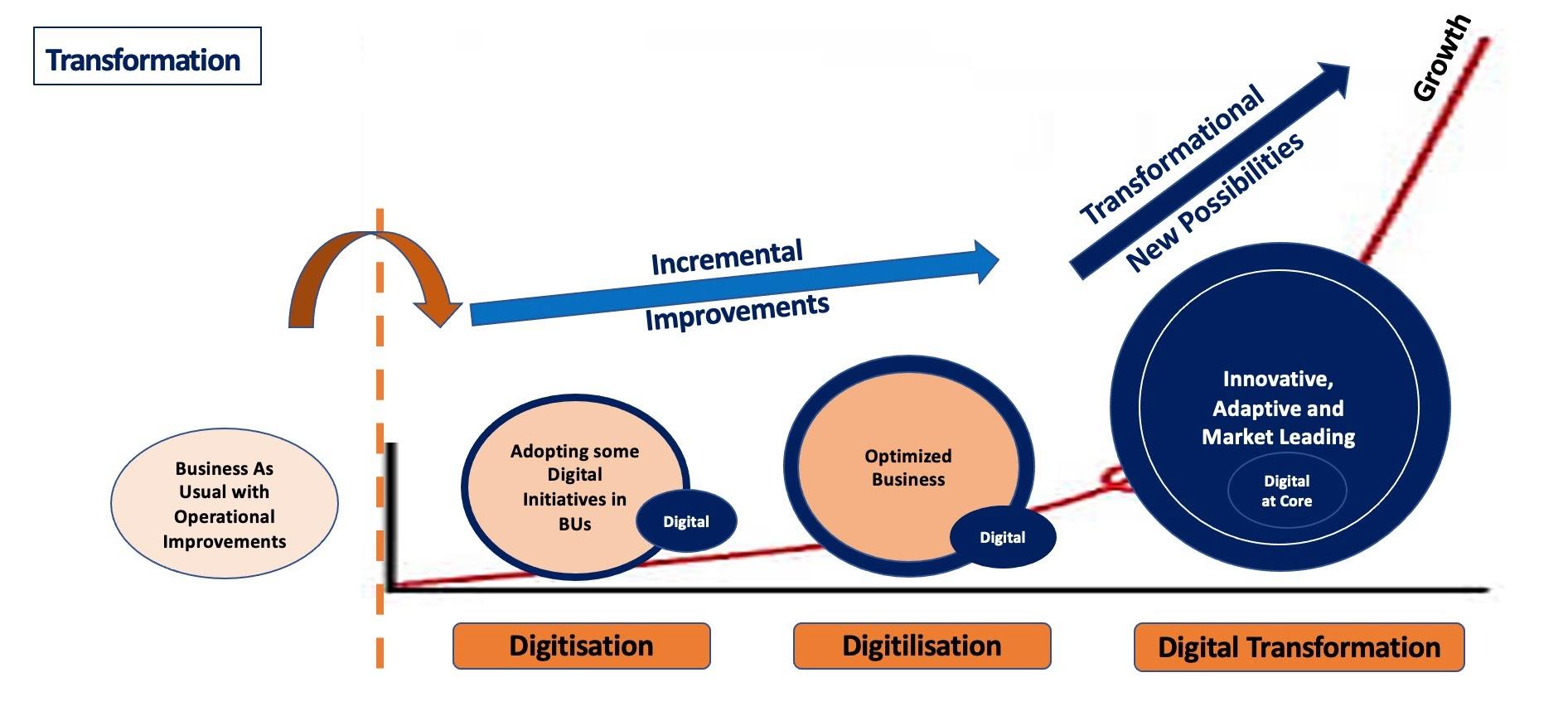 Digitalisation includes the conversion of processes or interactions into their digital equivalents. The key difference between digitisation and digitalisation is that the former deals with information and the latter refers to process and people. However, business models still remain the same in these two stages.