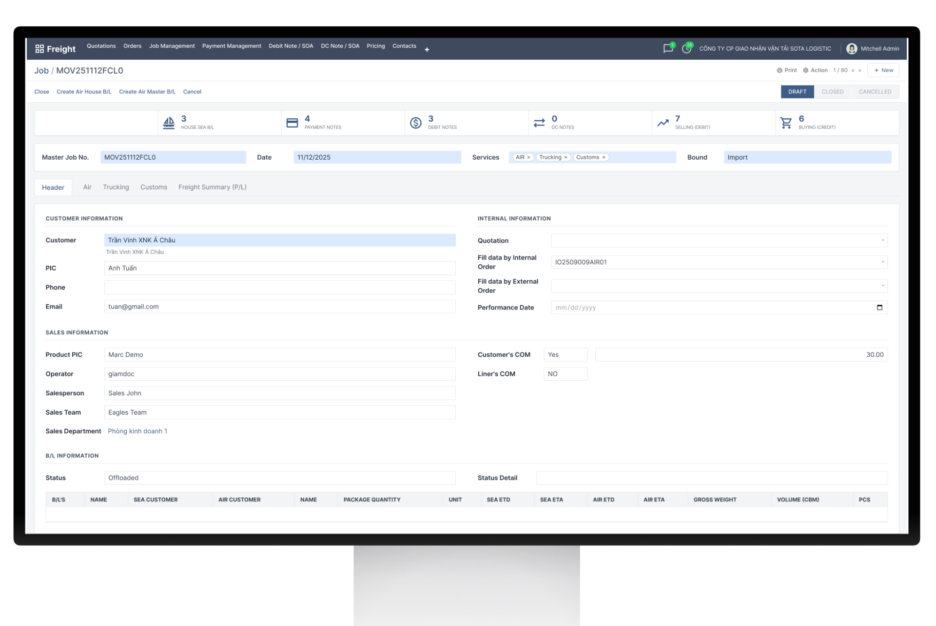 Unified Job & Bill of Lading Operations