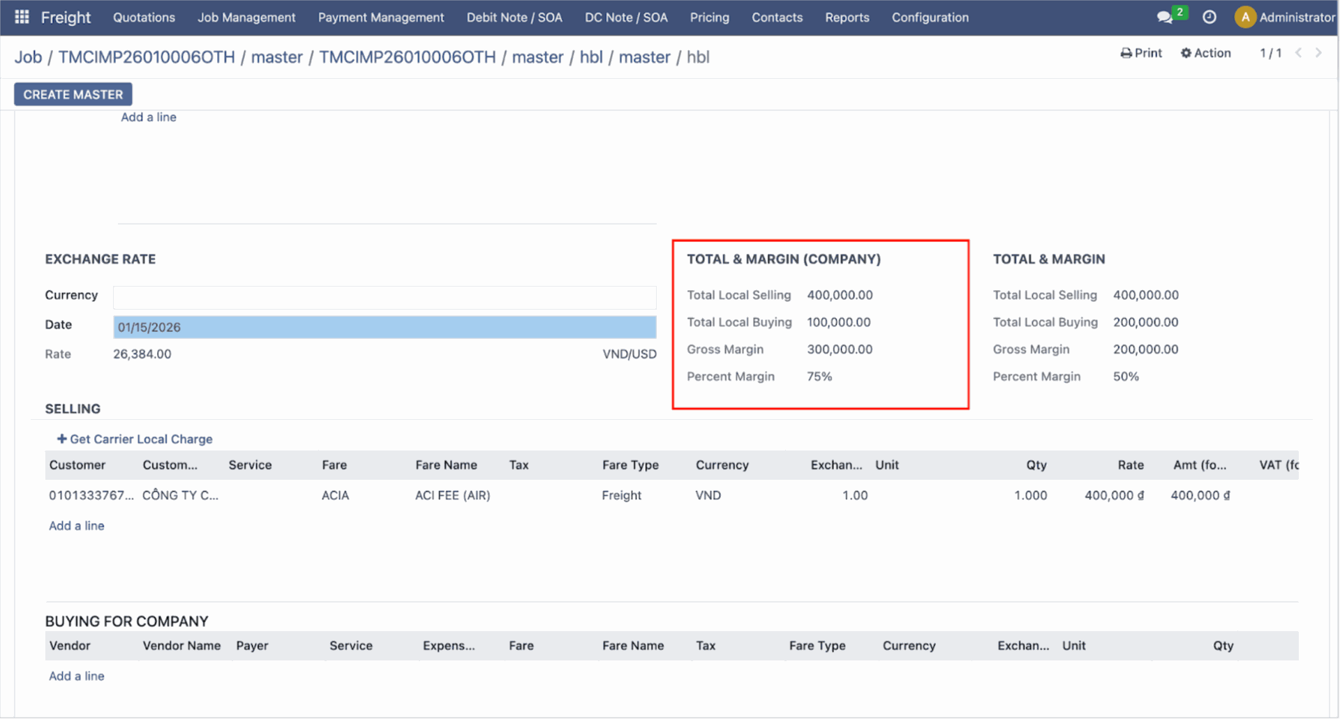 Automated Debit/Credit Notes linked with Jobs and House/Master B/Ls.